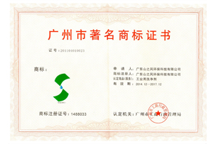 廣東省著名商標證書